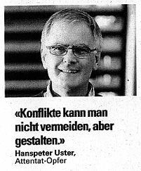 Der damalige Regierungsrat Hanspeter Uster hat das Attentat von Zug mit einem Lungendurchschuss überlebt. Gestern war er Gast in Königsfelden, um über den Umgang mit Querulanten zu sprechen. «Konflikte kann man nicht vermeiden, aber gestalten», sagt Uster. Für die Behörden heisse das zunächst einmal, auf jeden Fall die Menschen ernst zu nehmen, die von ihren Entscheiden betroffen sind. Die Bürger müssten über eine Ansprechstelle verfügen, die sie für unabhängig halten. Die besten Leute brauche es für die Entscheide in erster Instanz, fordert Uster. Eine Behörde dürfe auf keinen Fall so funktionieren, dass sie auf die Korrektur allfälliger Fehler auf der nächsthöheren Ebene baut.