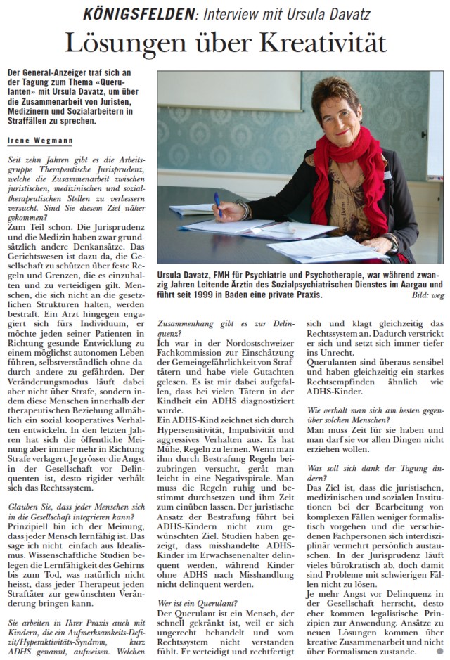 Solchen Fragen war die diesjährige Tagung der Arbeitsgruppe «therapeutische Jurisprudenz» gestern in der Klinik Königsfelden gewidmet. Ziel: die Zusammenarbeit von juristischen und medizinisch-psychosozialen Fachpersonen im Umgang mit schwieriger «Kundschaft» zu verbessern.